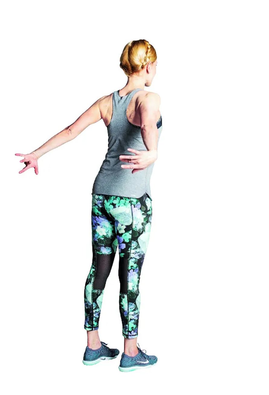 Muista: Kun suoristat kädet taakse, tarkista etteivät olkapäät jää eteen. Siirrä myös ne taakse.