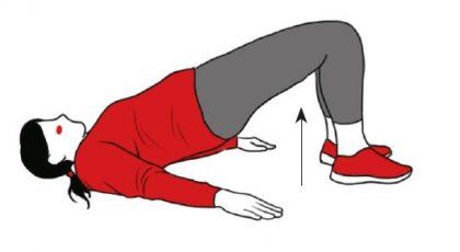 Käy selinmakuulle jalat koukussa, jalkapohjat maata vasten. Nosta lantio ylös, kunnes olet hartioittesi varassa. Älä kuitenkaan nosta selkääsi notkolle vaan pidä keho suorassa. Pidä hetki ja palaa alas.