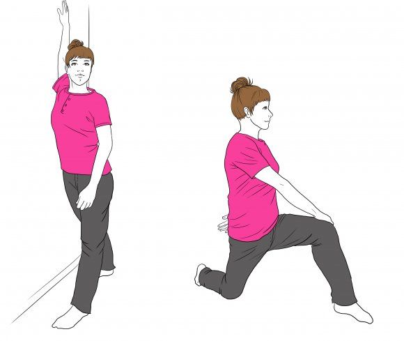 Aktivoi lantiota pakaralihasta myöten työntämällä häntäluusta asti eteenpäin. Vältä lantion kallistumista, äläkä paina sitä alas. Käsien kierto tehostaa venytystä. Polven alle voi panna pehmusteen, jos se tuntuu mukavalta.