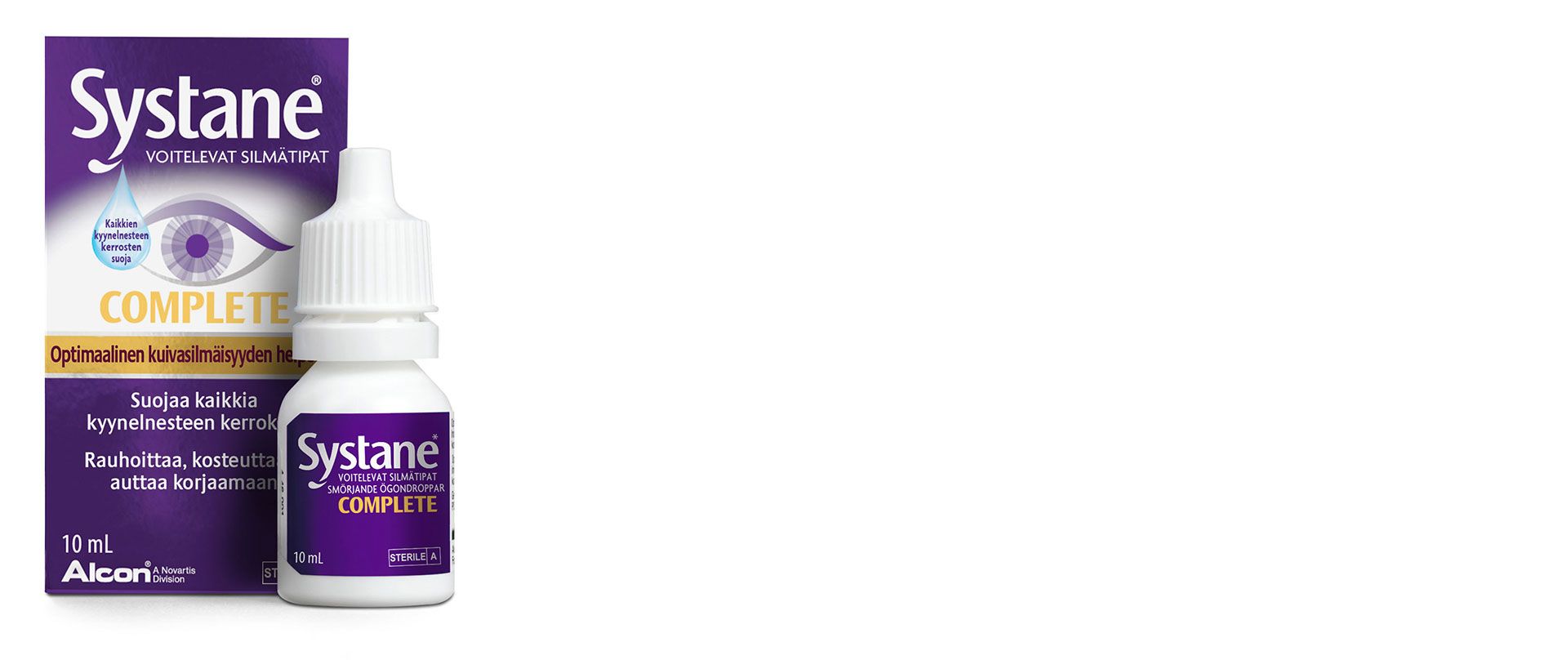 Kuivasilmäisyyden oireita voi tehokkaasti lievittää itsehoitotuotteina saatavilla olevilla voitelevilla silmätipoilla, kuten Systane® COMPLETE.