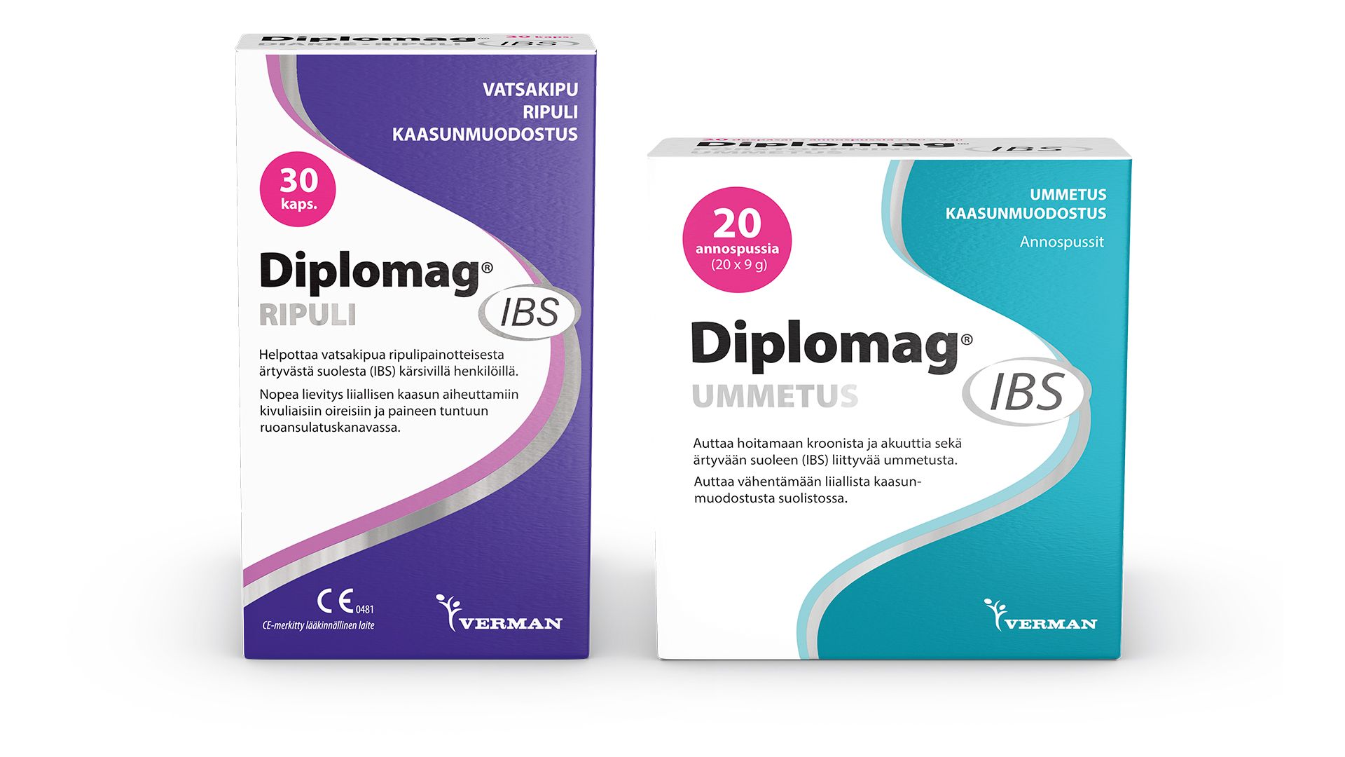 •    Diplomag® IBS tarjoaa vaihtoehdon sekä ripuli- että ummetuspainotteisen IBS:n hoitoon. Tuotteiden laadukkaat koostumukset on suunniteltu erityisesti ärtyvän suolen oireiden vähentämiseen.