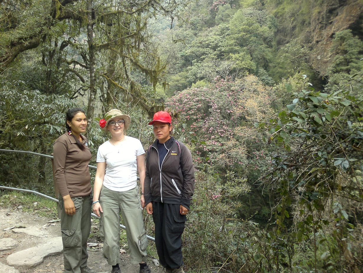 Miten olen tällaiseen rääkkiin suostunut, ihmettelin jalat vapisten, hengitys läähättäen ja sydän takoen. Ei enää ikinä. Tajusin, että jokainen askel on otettava itse, apuja ei tule. Mutta toisaalta jokainen askel myös vie kohti lepopaikkaa. Oli paha olla ja ympärillä maailman kauneimmat metsät. Kukkivia rhododendroneita, bambuja, näsiöitä, havupuita, joissa oli kymmensenttiset neulaset — välillä ylitimme kirkasvetisen puron tai ohitimme karunkauniin kylän. Vaikka pidimme lepotaukoja, en pystynyt ajattelemaan muuta kuin miten selviän tästä.