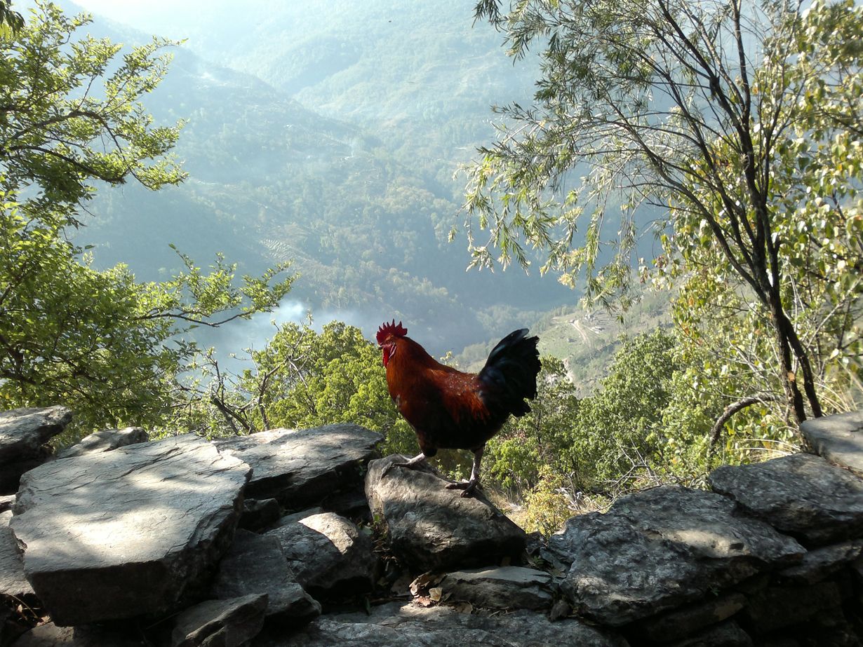 Majatalon terassilta seurasin vuoristokylän ihmisiä ja eläimiä. Kanoja ja kukkoja, joiden ilmaisunvapautta ei rajoittanut mikään. Koiria, joiden reviiri kattoi koko kylän. Vesipuhveleita ja lehmiä, jotka laidunsivat omaan tahtiinsa niityillä ja pihoilla. Vuoripolulla saattoi tulla vastaan yksinäinen hevonen matkalla jonnekin, paimen vuohilaumansa kanssa, lapset koulukirja kainalossa tai aasikaravaani turisteille olutta kantaen. Haukkojen hidasta tanssia kaiken yllä olisin katsellut loputtomiin.