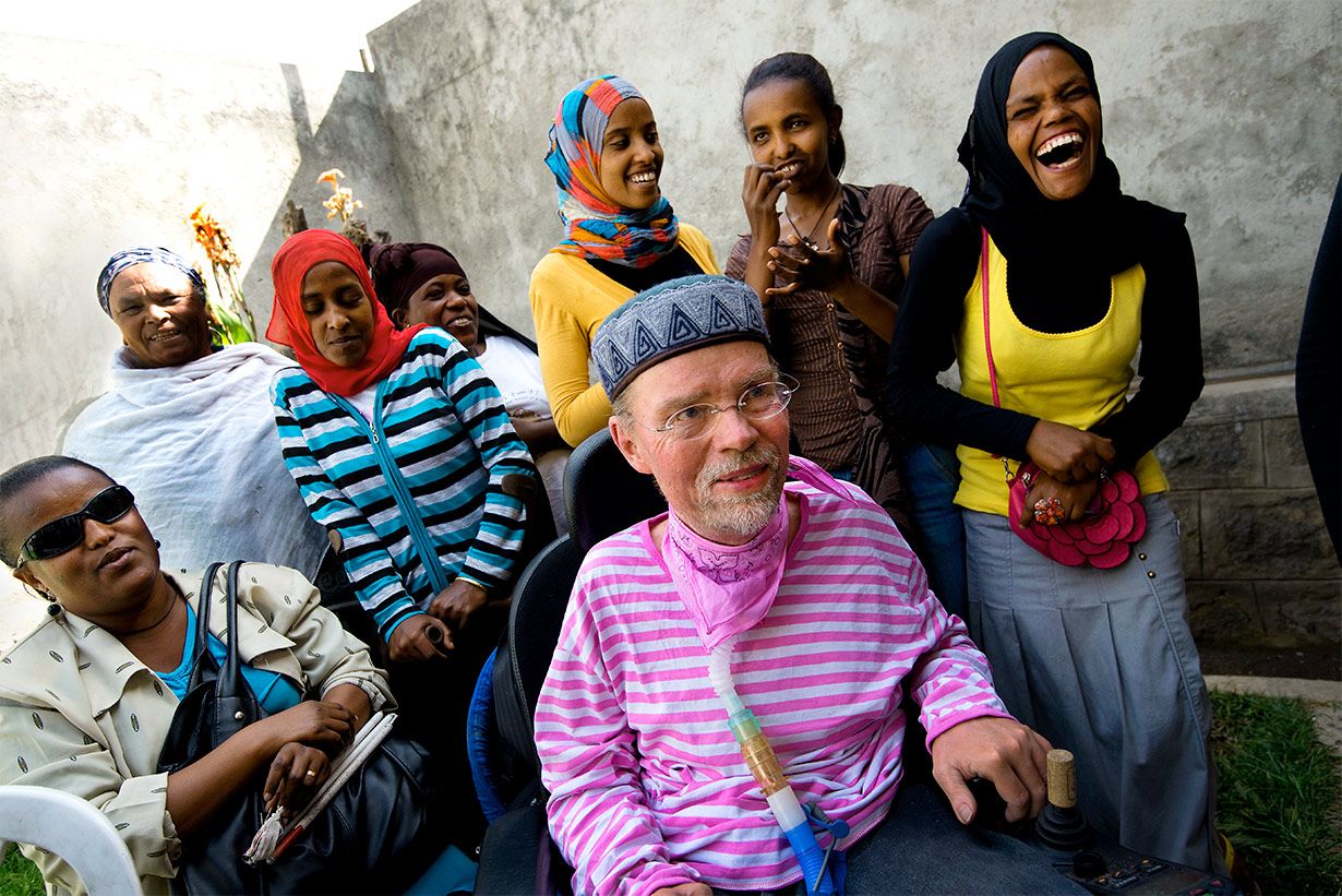 Suomen tunnetuin vammaisaktivisti, entinen kansanedustaja ja kaupunginvaltuutettu Kalle Könkkölä on jo vuosikymmeniä vaikuttanut paitsi paikallisesti myös maailmanlaajuisesti. Hän on aina valmis matkustamaan sinne, missä hätä on suurin.