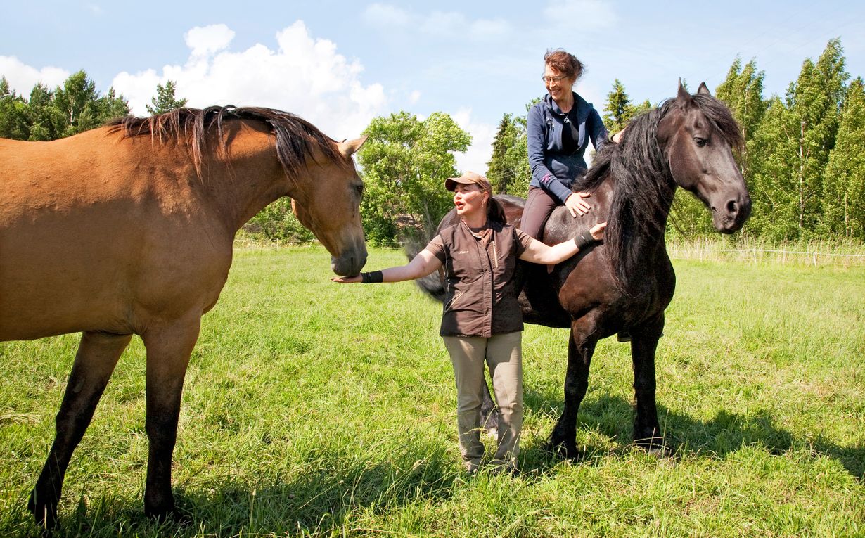 — Tavoitteena olisi hoitaa potilaita yhdessä, mutta toistaiseksi yhteistyötä on tehty hoitamalla fyysisesti sairastunutta ensin psykoterapeuttisella ratsastusterapiajaksolla ja siirtämällä sitten fysioterapiaan, psykiatrian erikoislääkäri ja ratsastusterapeutti Taina Mustapää kertoo.