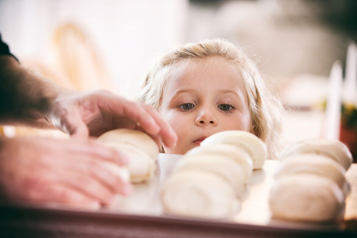 12. Leipokaa yhdessä. Sen lisäksi, että leipominen on hauskaa ajanvietettä, tulet opettaneeksi kummilapsellesi tärkeitä arjen perustaitoja.