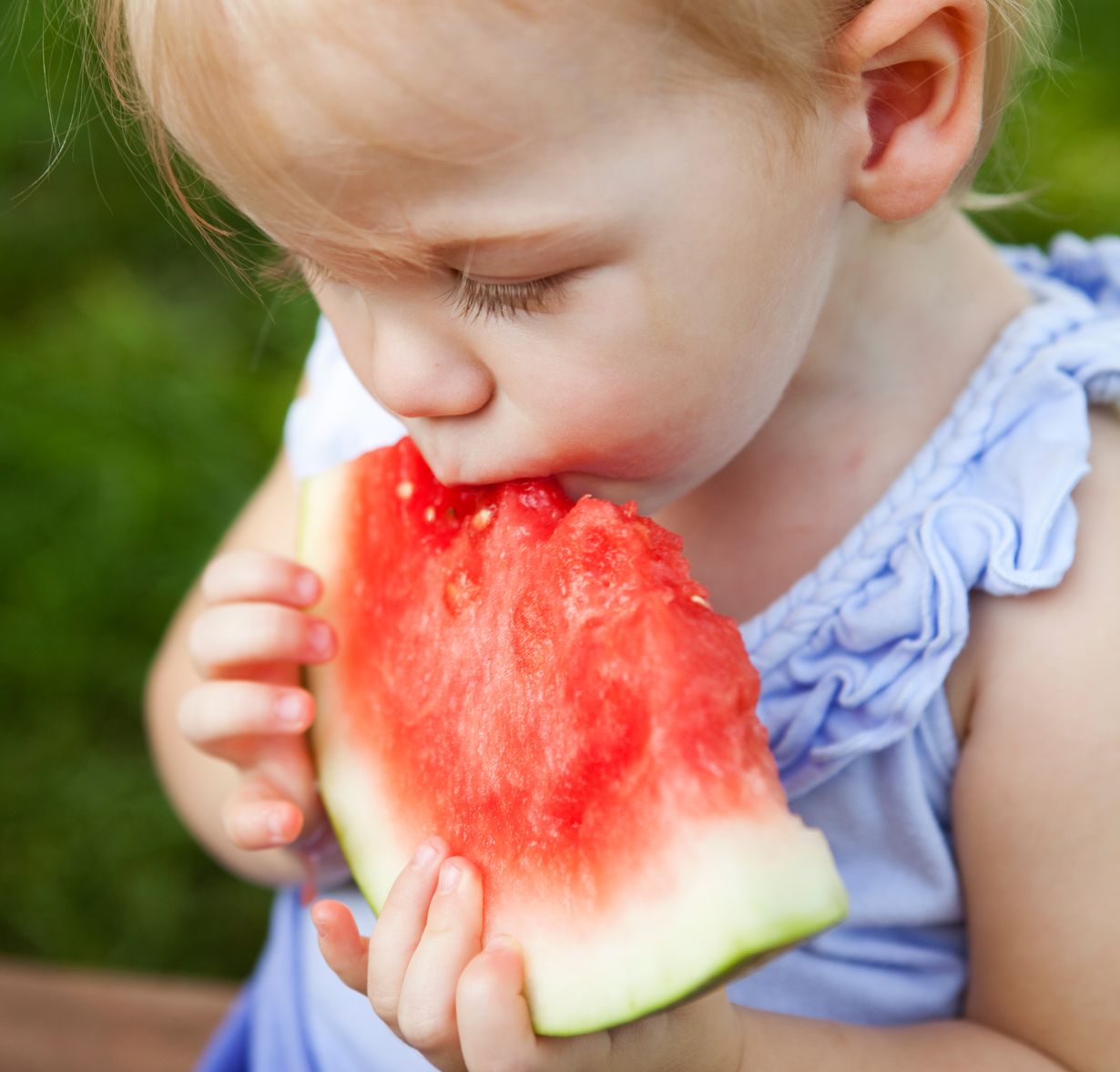 Hellekelillä lapsen nesteytyksestä voi huolehtia esimerkiksi vesipitoisten kasvisten ja hedelmien avulla, lastenlääkäri kertoo.