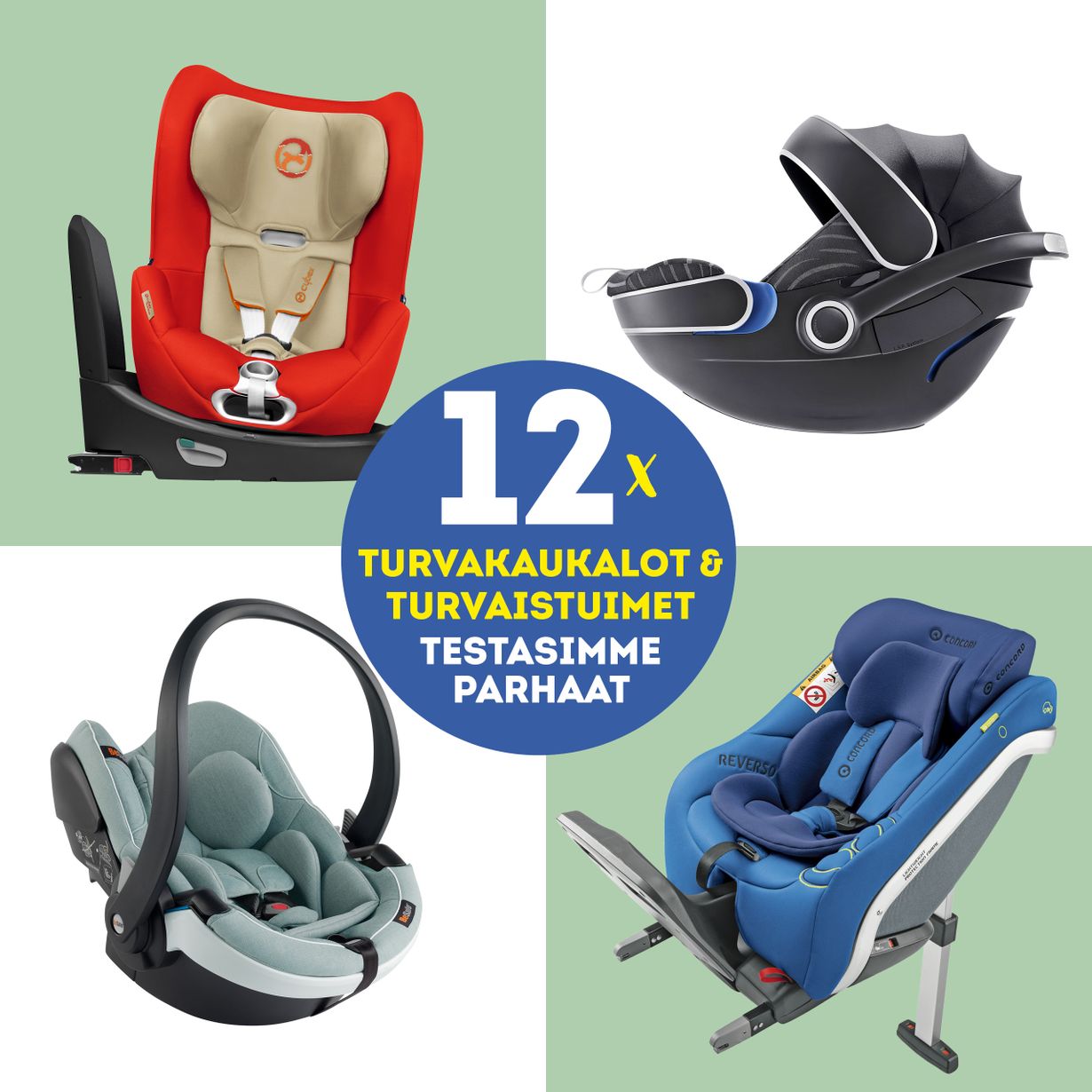 Valitse kuva alta, niin pääset selaamaan lisätietoja turvakaukaloista ja -istuimista. Voit myös arvioida niitä tähdillä tai kommentoimalla. Tuotteet eivät ole paremmuusjärjestyksessä.