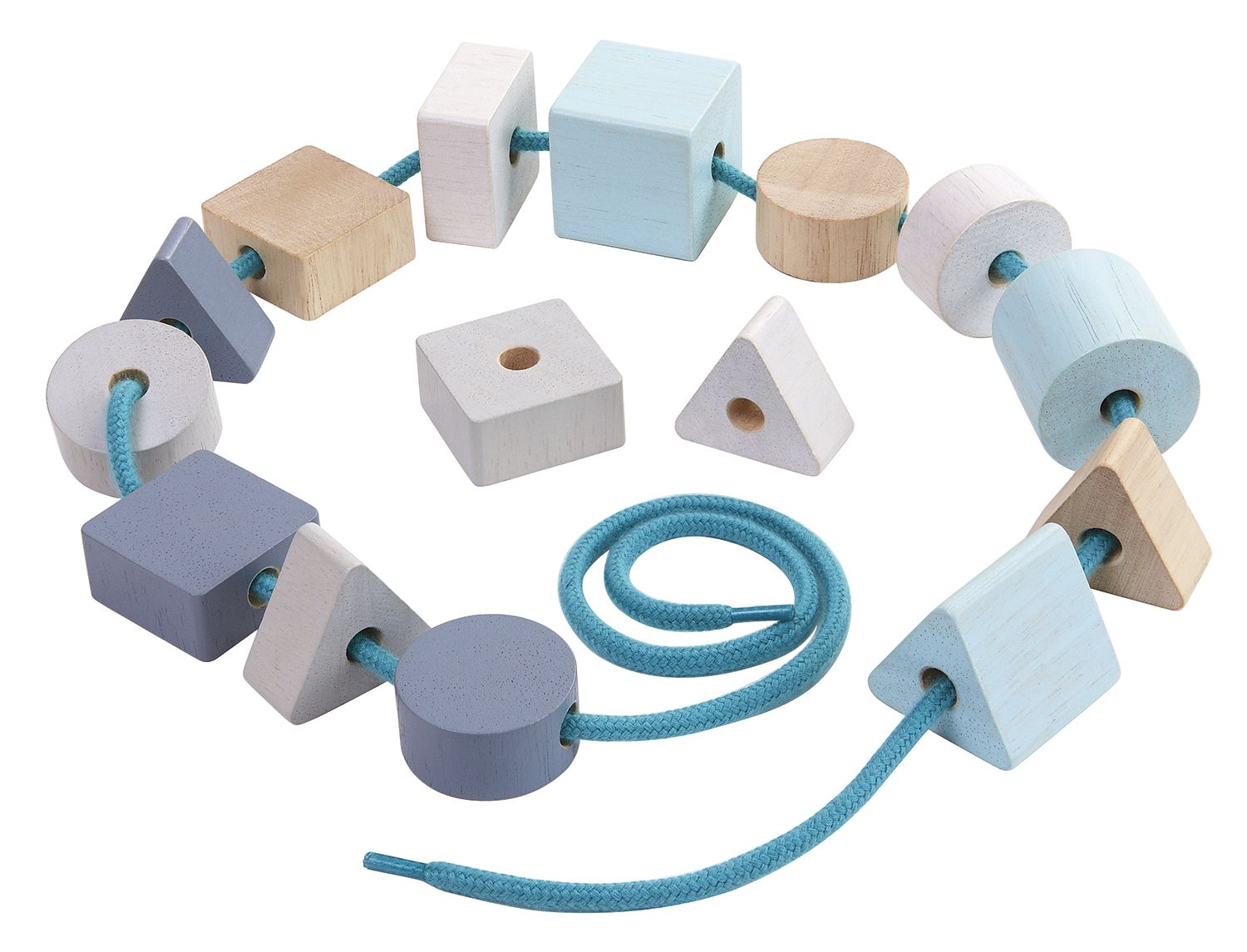 Thaimaalaisen leluvalmistajan uutuudessa, muotohelmissä, on kaksi nauhaa ja 15 helmeä. Helmien pujottelu nauhaan kehittää hienomotoriikkaa ja keskittymiskykyä. Pujottelun opettelemisen lisäksi lelu auttaa lasta hahmottamaan muotoja, värejä ja kokoja. Voipa helmiä käyttää vaikkapa helmitaulun tapaan numeroiden ja laskemisen harjoitteluunkin. Muotohelmien materiaali on kumipuuta.