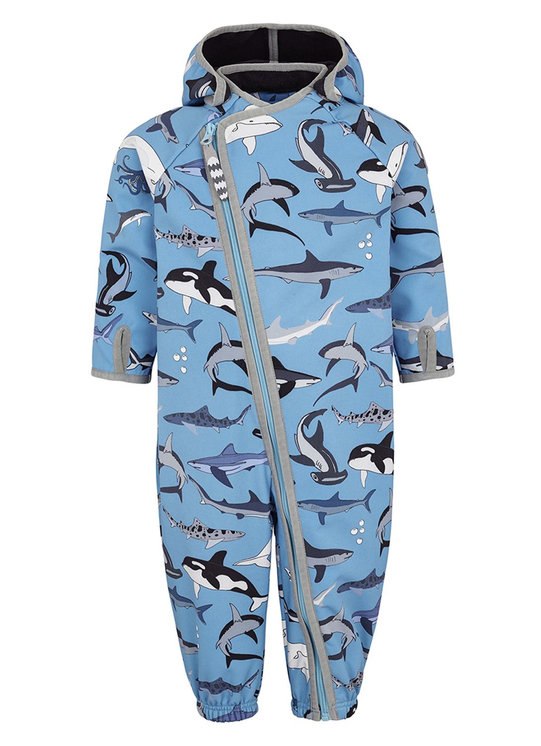 Teknisestä kolmikerrosmateriaalista valmistettu softshellhaalari kätkee sisäänsä ihanan pehmeän fleecevuoren. Veikein palloin koristellussa haalarissa on vettä ja likaa hylkivä viimeistely. Hupun reunassa sekä hihan- ja lahkeensuissa on joustava kanttaus. Pitkä vetoketju helpottaa pukemista. Saatavana myös sinivihreänä.