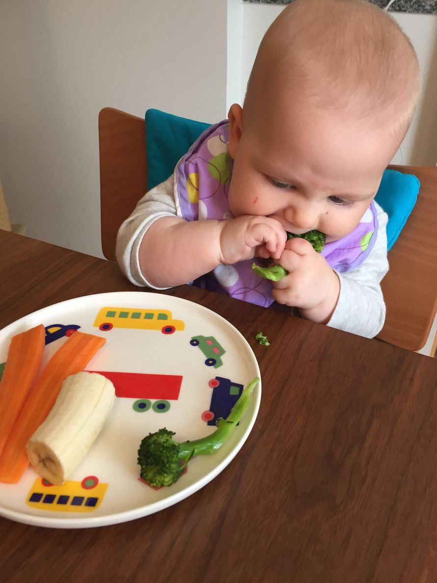 3. Älä tuputa. Vauva saa päättää, mitä ja miten paljon syö. Kun vauva saa tutustua ruokaan omassa tahdissaan, hän ei nirsoile. Esikoiseni ihan ensimmäinen ateria oli höyrytettyä parsakaalia ja porkkanaa sekä banaania. Hän nappasi ensin parsakaalin kukinnon suuhunsa, ja tykkää siitä edelleen.