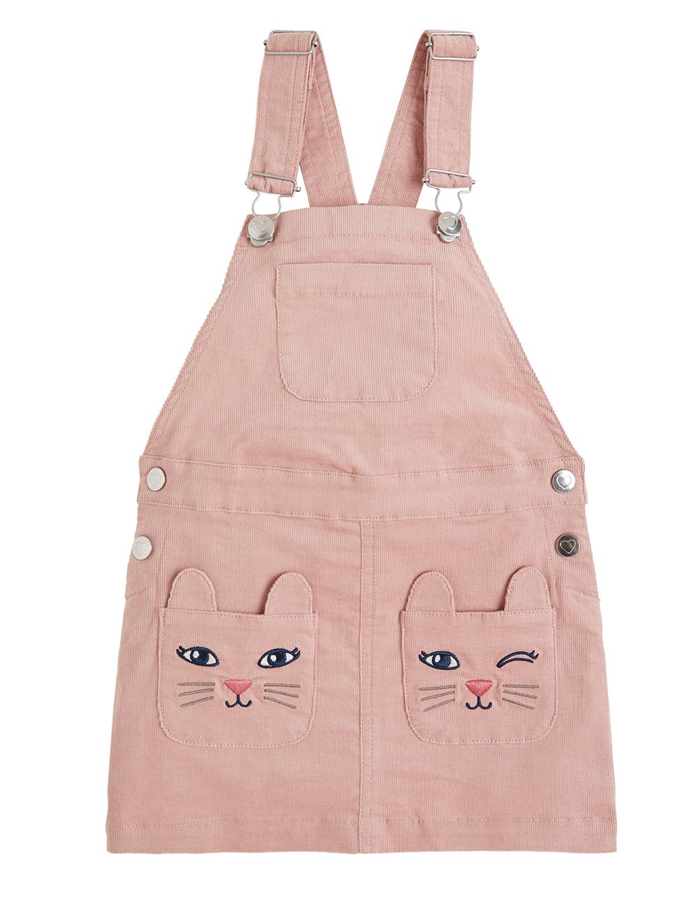 Lappuhaalarimekko on vakosamettia. Hauskoihin pupunkorvataskuihin mahtuu pikku aarteita. Koot 92–122 cm. 18 e, Lindex.