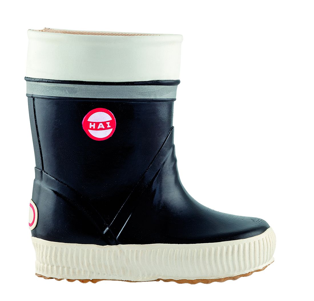 Kumisaappaiden matala varsi tuntuu jalassa mukavalta. Pohjalliset ovat huopaa. Koot 21–35. 39,50 e, Hai.