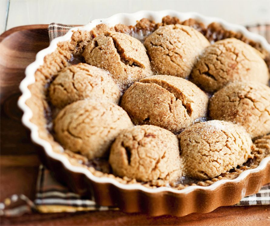 Upota omenasatoa herkulliseen piirakkaan, jossa omppupuolikkaat peitetään taikinapeitolla.