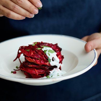 1. Kuori ja raasta punajuuret, perunat ja fenkoli karkeaksi raasteeksi. Kuori ja hienonna sipuli. Siirrä kasvisraasteet ja hienonnettu sipuli kulhoon ja sekoita joukkoon munat ja mausteet. Sekoita tasainen massa.