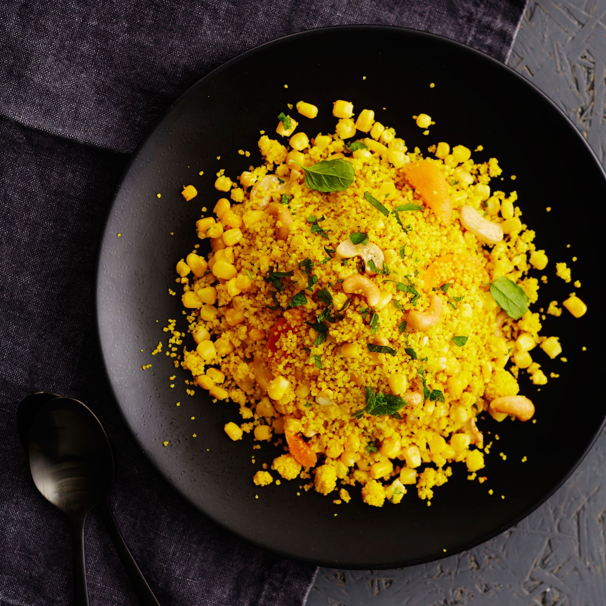 Pähkinä-maissicouscous on jo sinällään ravitseva ruoka, mutta toimii hyvin myös maistuvana lisukkeena.