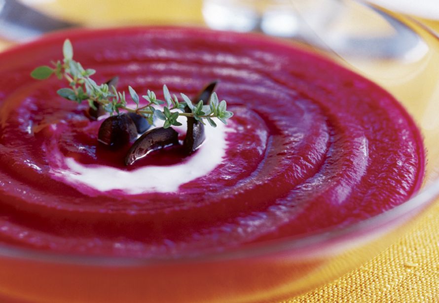 Sosemaiseen keittoon käyvät kaikki juurekset, mutta punajuuri värjää sen upeasti.