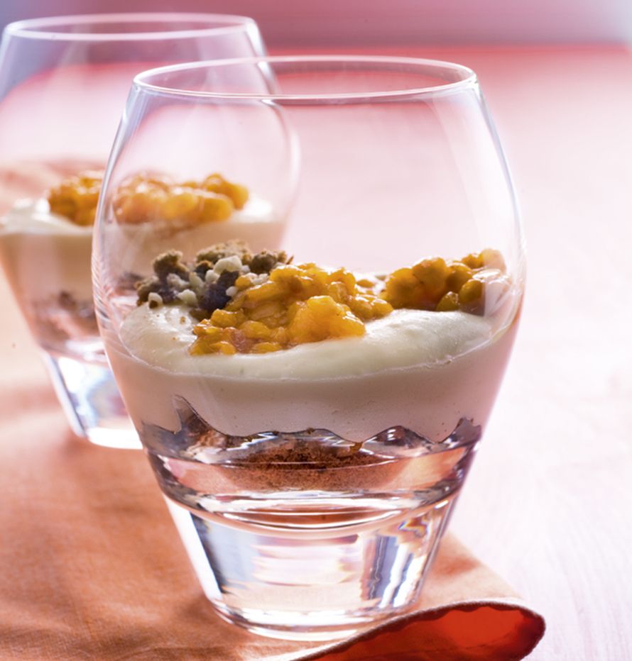 Kauniisiin laseihin annosteltu lakkaherkku on juhlava jälkiruoka.