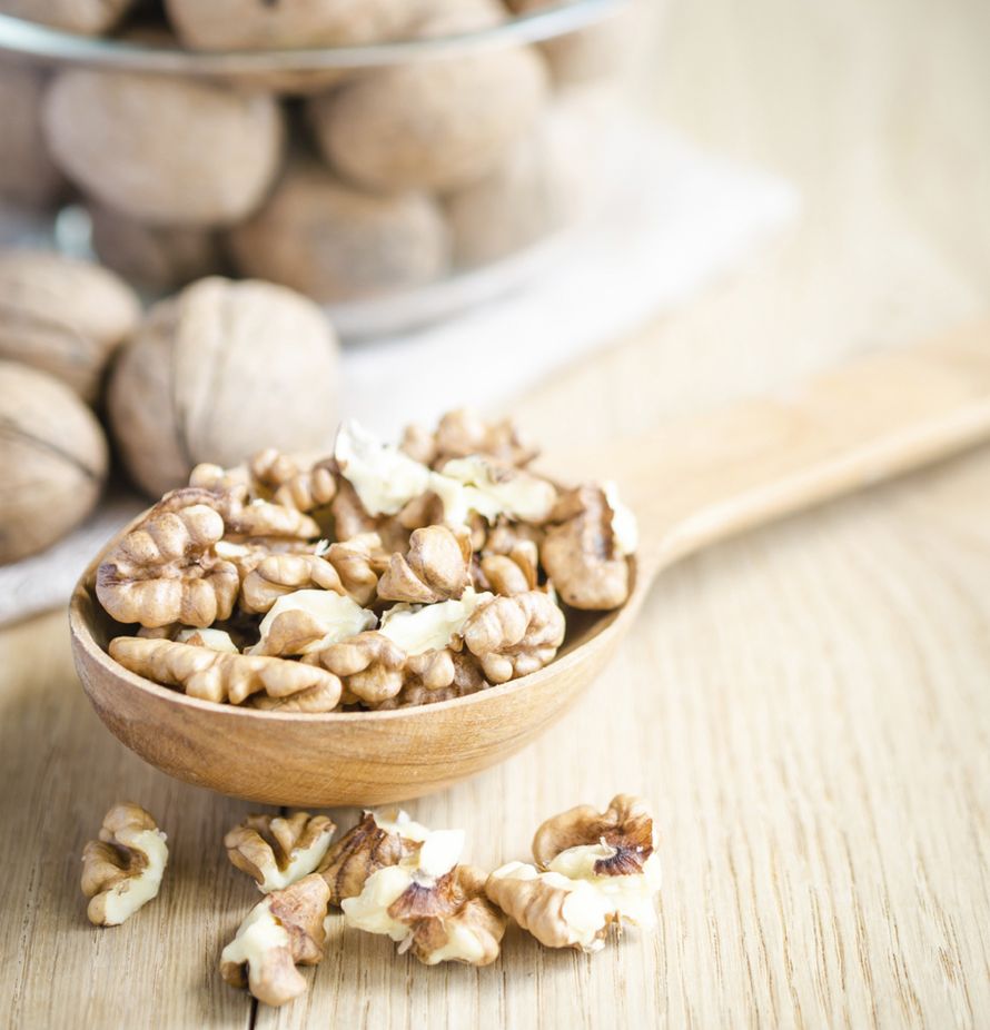 4. Lisää saksanpähkinärouhe. Voit paahtaa osan pähkinöistä pannulla kullankeltaisiksi, myös öljyttä.