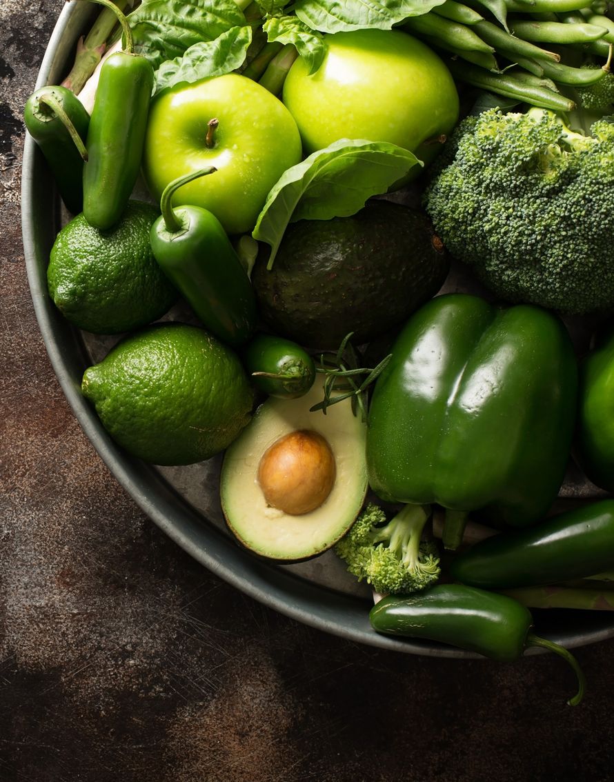 Klorofylli eli lehtivihreä antaa vihreille kasviksille niiden värin. Vihreissä kasviksissa on runsaasti myös C-vitamiinia sekä luteiinia, joka edistää silmien terveyttä.