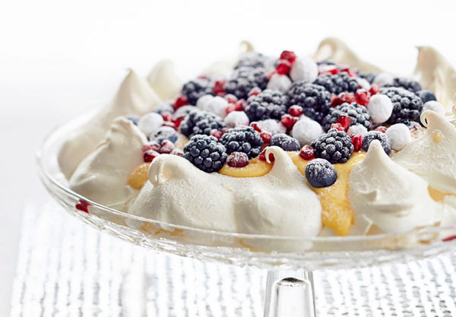 Pohjan ja täytteen voit tehdä hyvissä ajoin, mutta täyttämisen jälkeen tarjoa pavlova välittömästi.