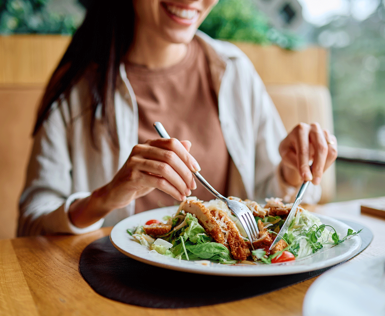 Siksi on hyvä pyrkiä syömään rauhallisesti ja varata aikaa vähintään 20 minuuttia. Syömiseen keskittyminen myös häiriintyy herkästi, jos samaan aikaan katsoo telkkaria tai selaa uutisia kännykän ruudulta.
