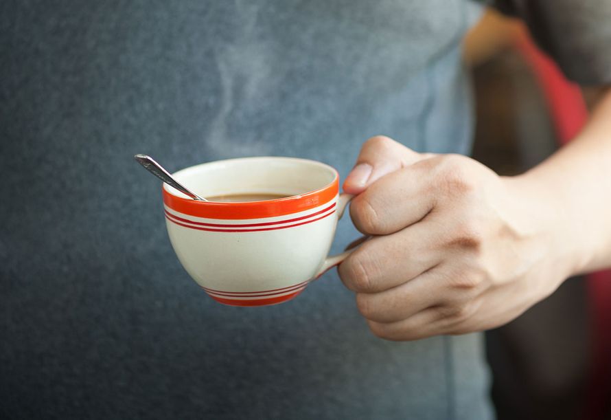 Ottaessani, esim. täyden kahvikupin käteeni, käteni alkavat täristä. Kun yritän estää sitä, niin tärinä vain yltyy. Mikä avuksi?