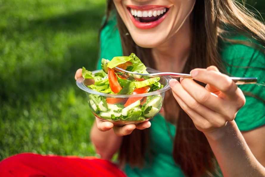 Syö! Kasvislounas, jossa ei eläinkunnan tuotteita, ei maitoa, eikä juustoja. Syö värejä. Aterialla voi olla papuja, linssejä, herneitä, pähkinöitä, siemeniä, perunaa, sieniä, marjoja, täysjyväpastaa, täysjyväriisiä, quinoaa. Jälkiruoaksi vaikka taatelia, rusinoita. Ei lisättyä sokeria. Työpaikkaruokalasta voi pyytää sokerittoman vegaaniruoan.