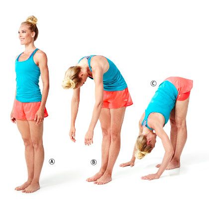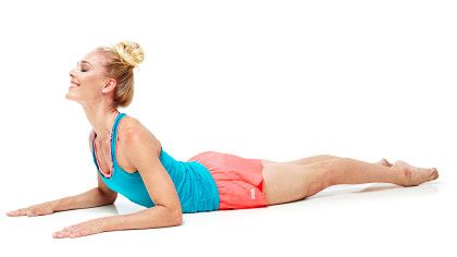 (C) Rentouta vatsa ja pakarat alhaalla. Takapuoli osoittaa ylös ja reisien takaosa venyy. Jatka vaiheeseen 2.