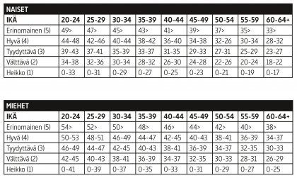 Tarkista oma tuloksesi alla olevasta kaaviosta.