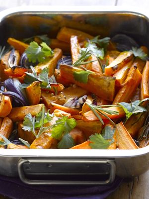 Paahdettuja kasviksia ja vuohenjuustotahnaa