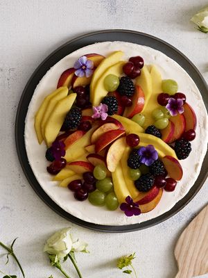 Upea, kevyt hedelmä-rahkakakku sopii täydellisesti kevään juhlapöytiin