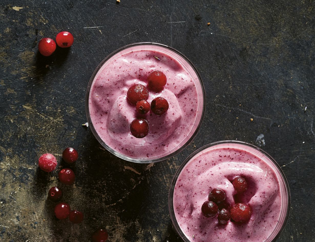 Vegaaninen smoothie on todellinen ravintoainepommi. Annoksessa on runsaasti hyviä pehmeitä rasvoja, proteiinia ja kuitua. Karpaloiden sijaan voit käyttää hyvin myös puolukoita.