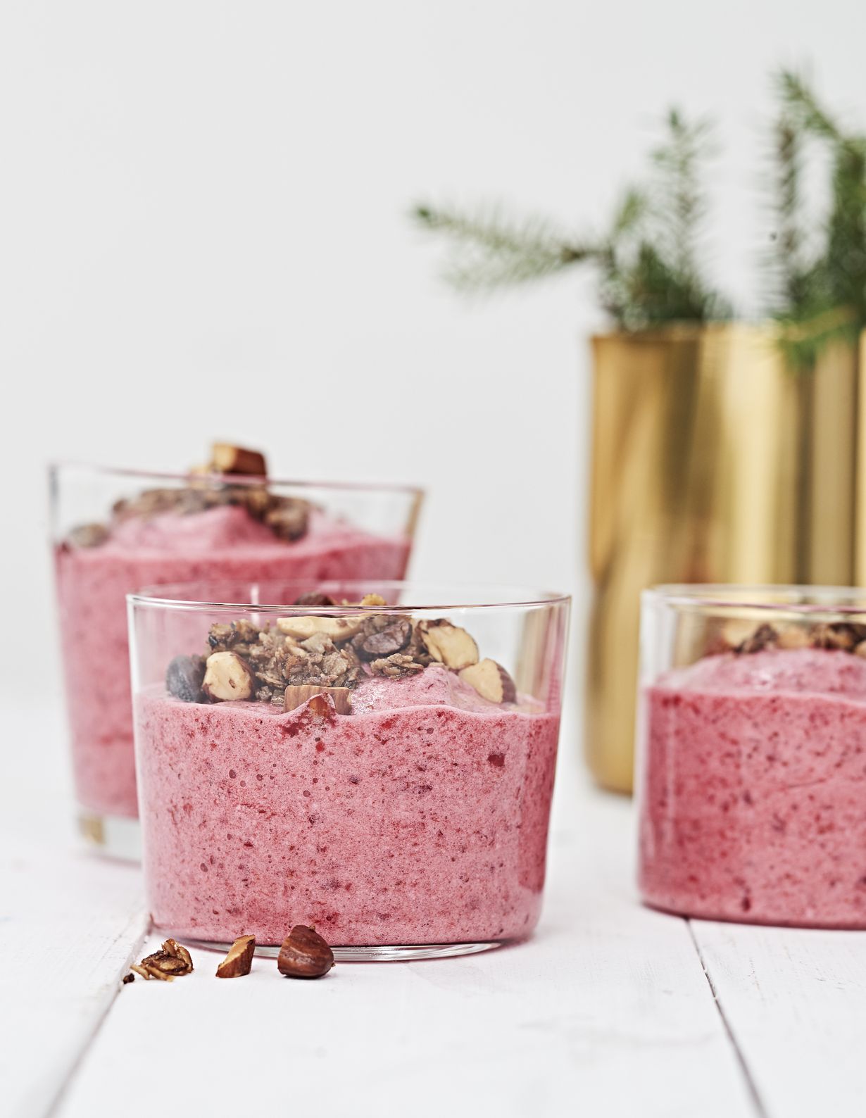 Puolukkamousse on upean raikas ja kevyt päätös joulukauden illalliselle. Kauracrumble antaa mukavaa purutuntumaa.