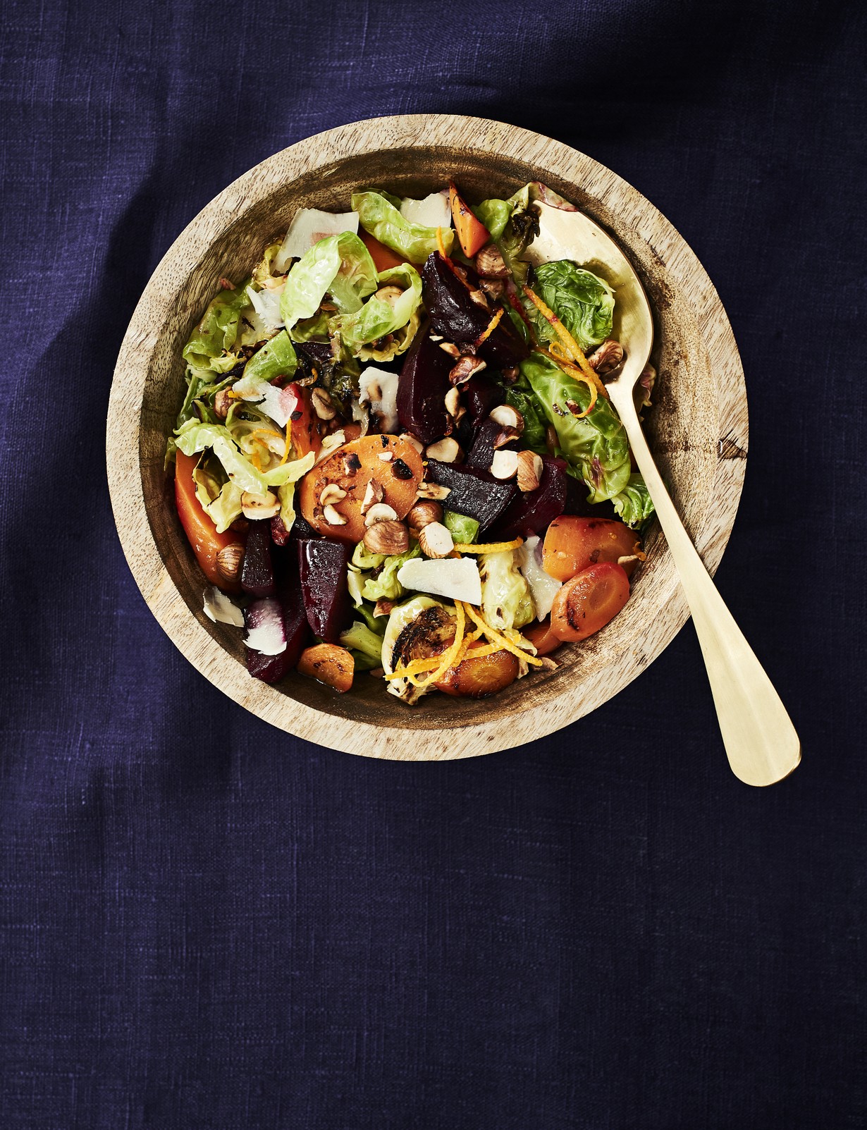 Rosollista tutut punajuuri ja porkkana saavat salaattiin kaverikseen ruusukaalin lehdet