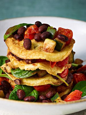 Runsaasti proteiinia ja kuitua: munakaslettuja kasvis-papumuhennoksen kera