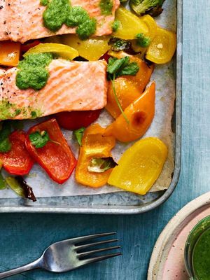 Uunipaahdettuja kasviksia ja lohta – ja rutkasti terveellisiä omegakolmosia
