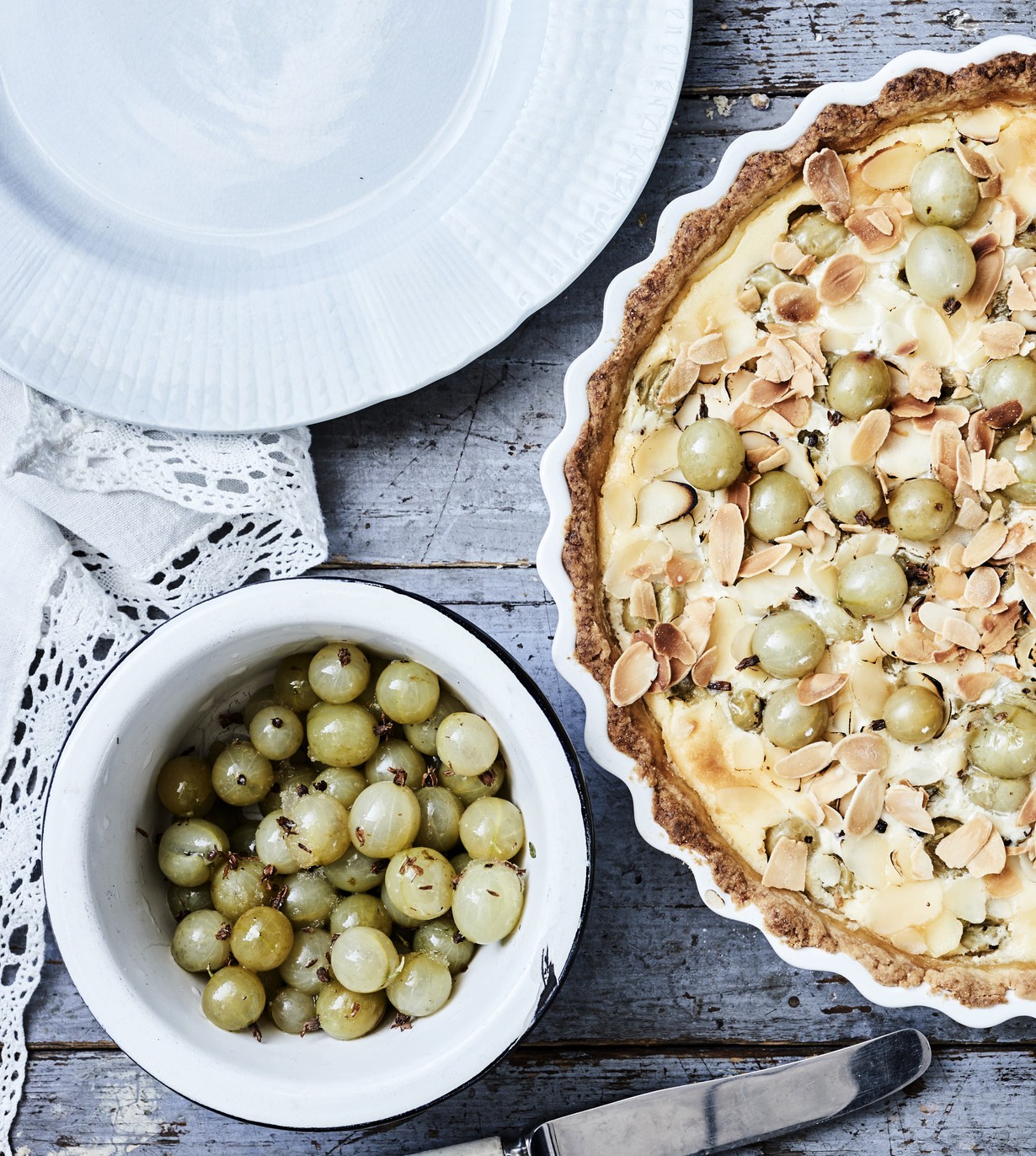 Mahtavat yhdessä: helppo manteli-karviaispiirakka