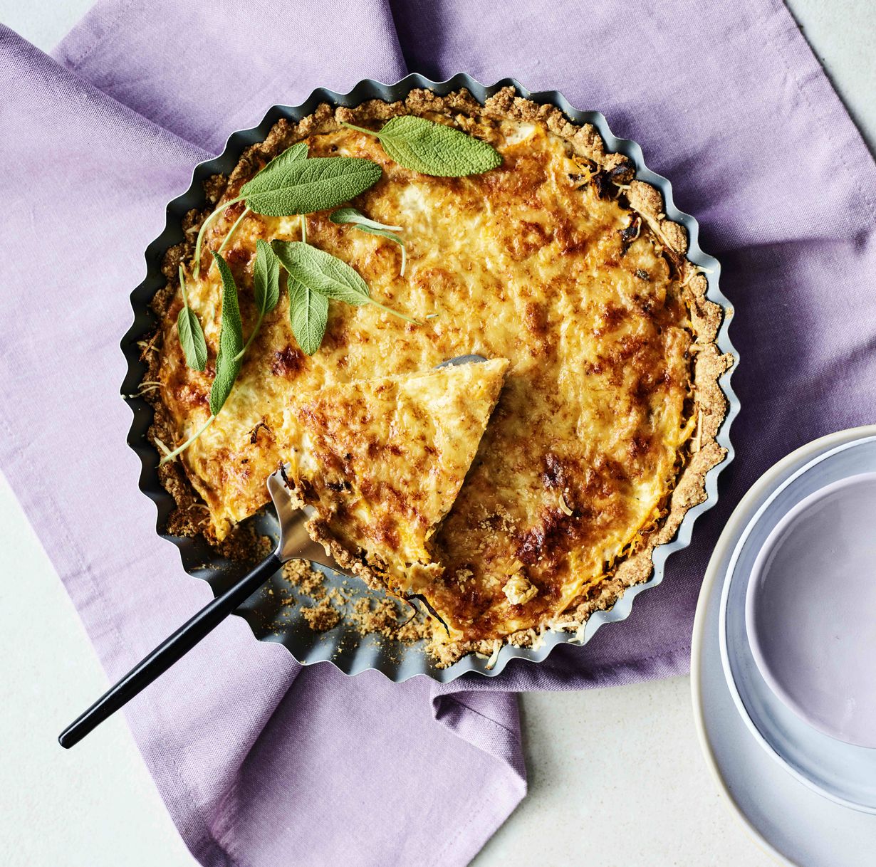 Mehevä bataattipiiras leivotaan gluteenittomista kaurajauhoista, joten se on erinomainen tarjottava keliaakikolle.